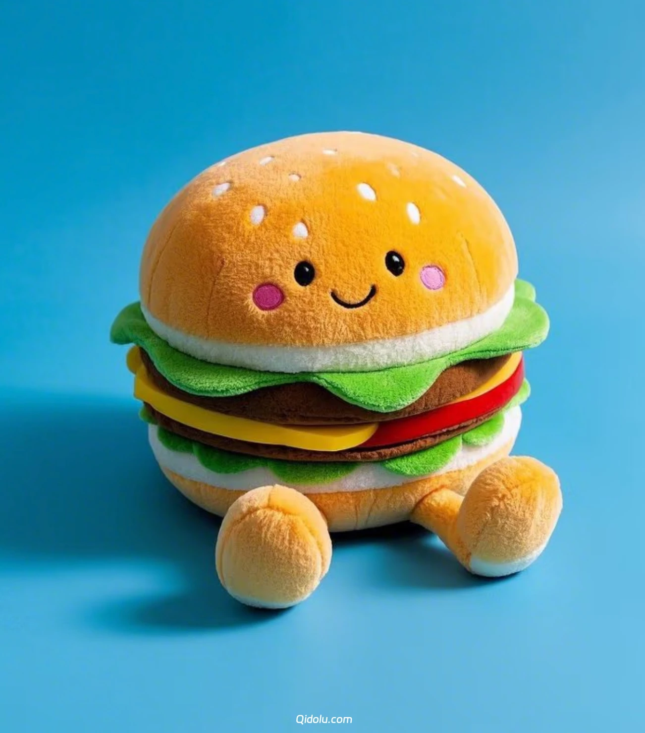 The Burger: Its multi-layered structure is a key design feature. From the fluffy, sesame-seed-sprinkled bun to the crisp lettuce, savory patty, and melted cheese, each layer is crafted from different textured fabrics and meticulously stitched together, offering a rich tactile experience.